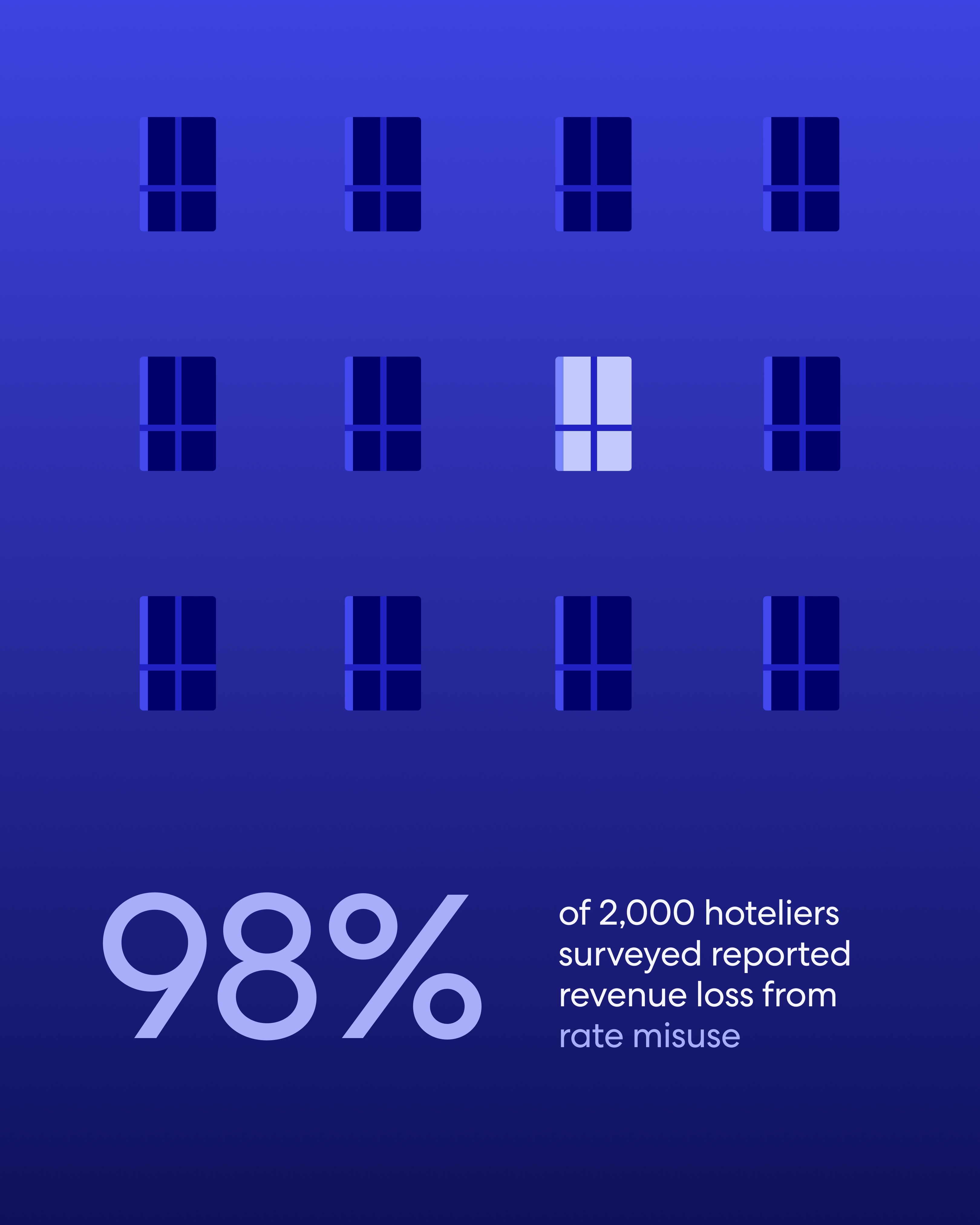 - 98% of hoteliers surveyed lose an average of 6% of revenue annually due to rate leakage.