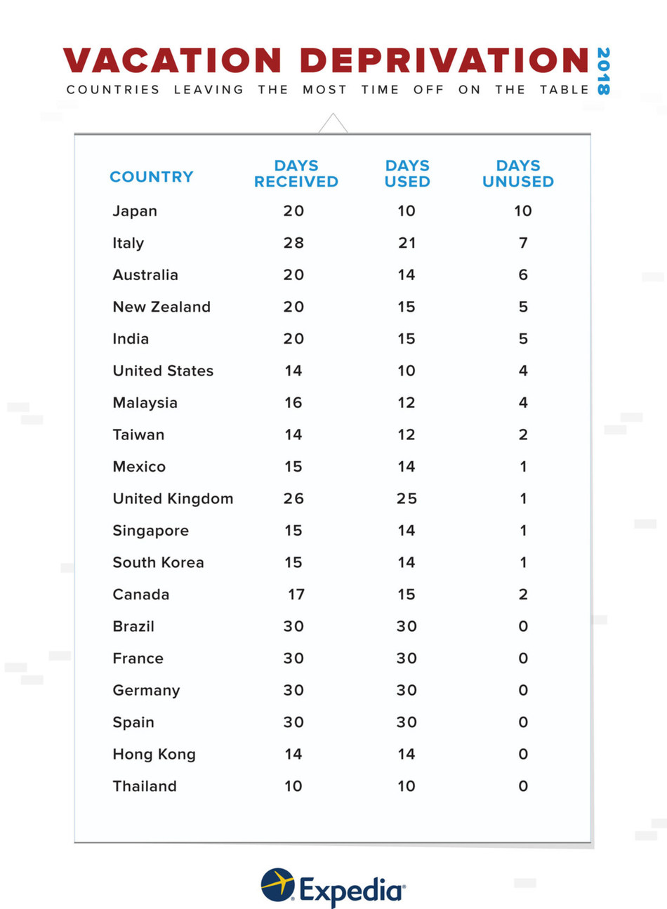For more highlights from the 2018 study and the history of Vacation Deprivation around the world, check out the Expedia Viewfinder® blog.