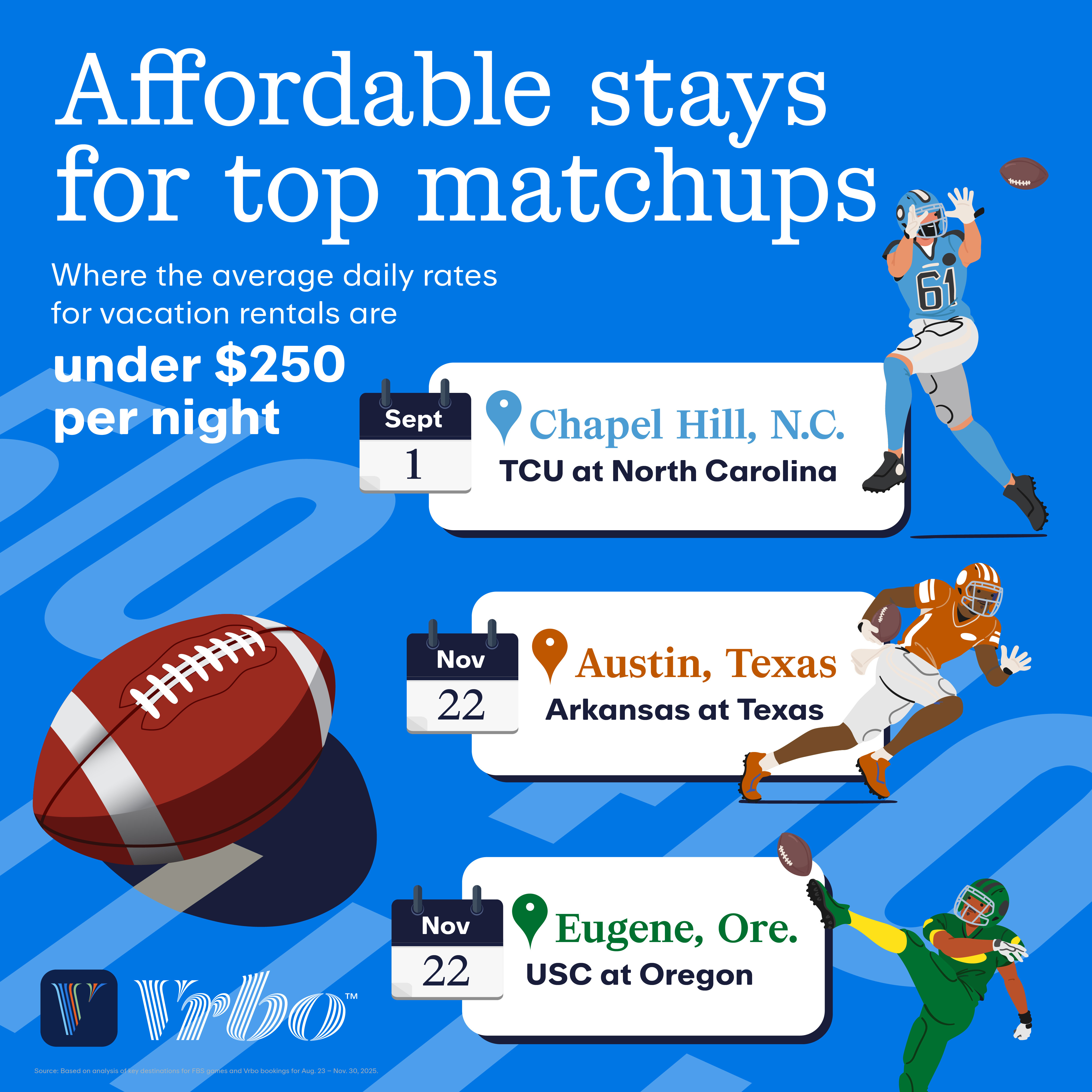 | 3 | Based on analysis of key destinations for FBS games and Vrbo bookings for Aug. 23 – Nov. 30, 2025. |